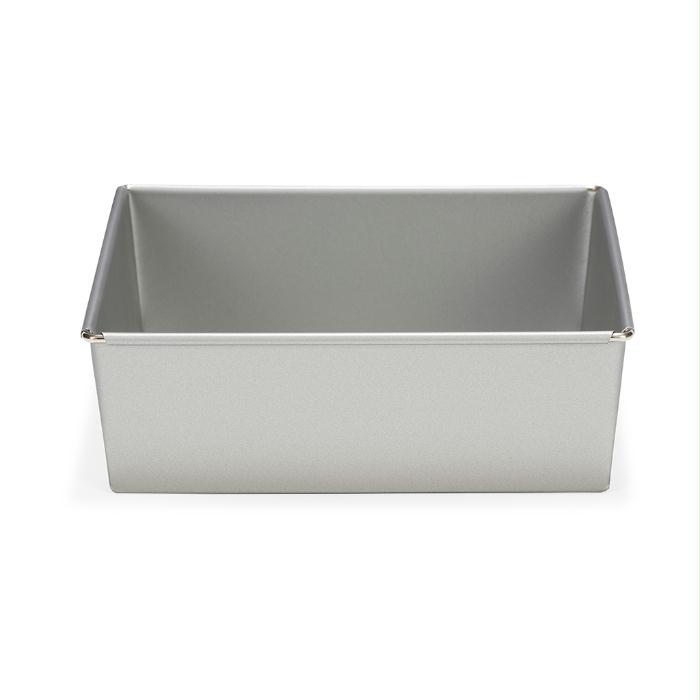 Een vierkante bakvorm met de Silvertop antikleeflaag.