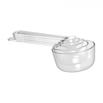 Deze maatlepels van Orthex zijn handig bij het afmeten van ingrediënten tijdens het koken en bakken. De set bevat 5 lepels: 1 ml; 5 ml (theelepel); 15 ml (eetlepel); 50 ml en 100 ml - de grepen zijn voorzien van de inhoudsmarkeringen. De grepen zijn extra lang zodat je probleemloos ook uit hogere potten schept. De onderzijde van de beide grootste lepels (50 en 100 ml) is plat dus deze staan vlak op je werkblad. De lepels klikken aan elkaar voor eenvoudig en compact opbergen, zijn gemaakt van helder transparant kunststof (san) en mogen na gebruik in de vaatwasmachine.