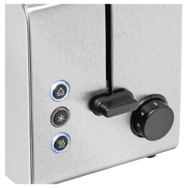 Met de duidelijk verlichte LED-functieknoppen (stop, opwarmen/roosteren en ontdooien) is de bediening eenvoudig en overzichtelijk. Het geïntegreerde warmhoudrekje maakt het mogelijk om broodjes of croissants warm te houden, terwijl het centreersysteem zorgt voor een gelijkmatige bruining van beide zijden van het brood. Na gebruik is de broodrooster eenvoudig schoon te maken dankzij de uitneembare kruimellade.