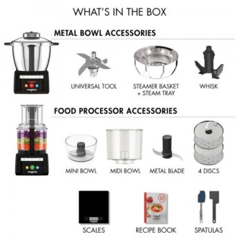 De Magimix Cook Expert is de nieuwste ontwikkeling op het gebied van keukenmachines. Behalve dat hij raspt, snijdt, mengt, hakt, klopt, kneed, en mixt kan deze Cook Expert ook koken, sudderen, stomen en ijs maken. Dit alles dankzij de dubbelwandige kom in combinatie met een inductiekookplaat. Hij maakt de heerlijkste warme gerechten zoals risotto, soepen, currys en puree. Maar ook brood en taartdeeg, desserts zoals chocolademousse en sorbets