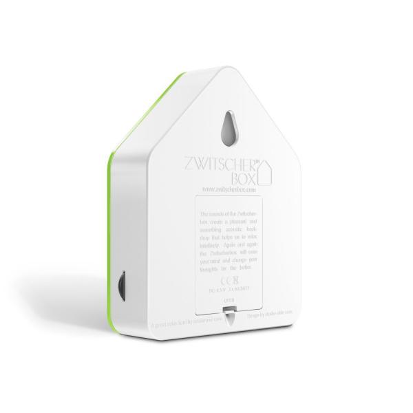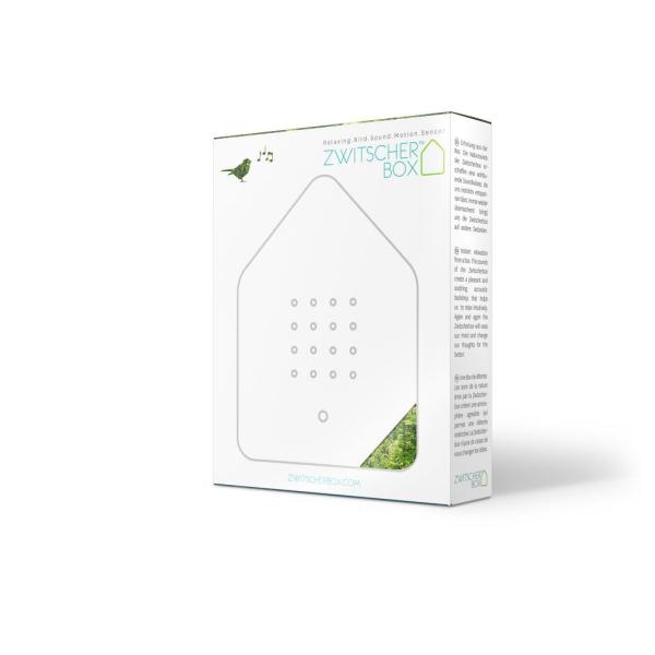 De natuurklanken worden geactiveerd zodra je langsloopt en verdwijnen na twee minuten vanzelf als er geen nieuwe beweging wordt gedetecteerd. Of het nu in de hal, badkamer, keuken, het toilet, op het balkon of in je kantoor is: je kunt de Zwitscherbox overal neerzetten of eenvoudig aan de muur hangen. Dankzij de energiezuinige batterijwerking ben je volledig onafhankelijk van netstroom.