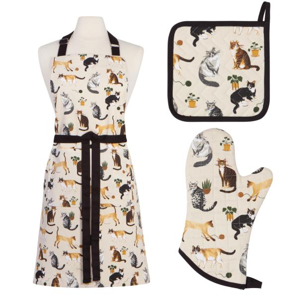 Leuk keukenschort met groente print, ook verkrijgbaar als ovenwant en pannenlap