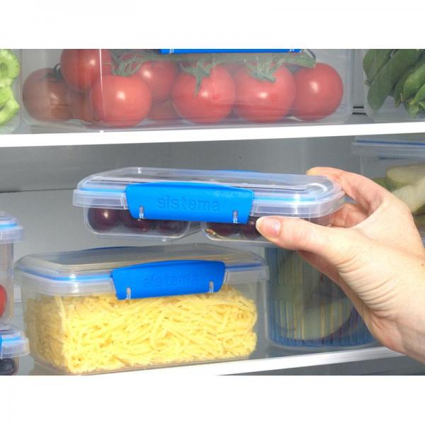 Vul de box en sluit de Sistema easylocking clips. De voorraaddozen van de Sistema Fresh Split serie zorgen voor het meest efficiënte gebruik van de ruimte in je tas, de koelkast, de vriezer en de voorraadkast.