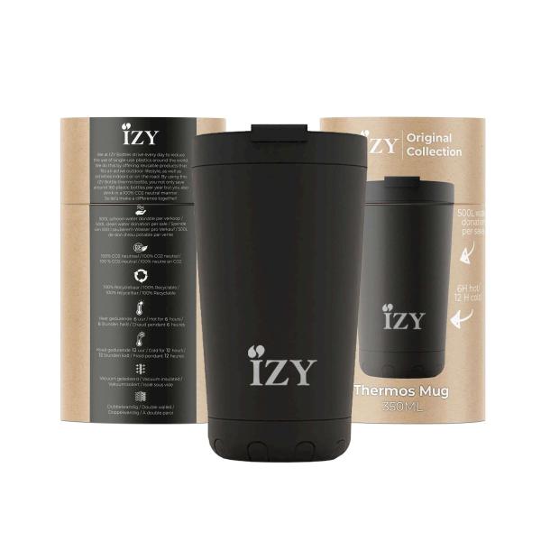 Thermomok 0.35 ltr. Mat zwart Izy Bottles