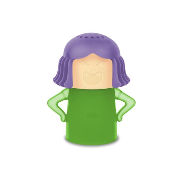 Angry Mama is de nieuwe metgezel voor het vuile werk. Het enige wat ze nodig heeft is wat witte azijn, een beetje water en 3 minuten in de magnetron. De stoom die door haar hoofd komt zal de vuilresten oplossen. Veeg vervolgens uw magnetron eenvoudig af met een handdoek of doek en uw magnetron is weer fris. Omdat Angry Mama geen chemicaliën nodig heeft, is het niet alleen doodeenvoudig, maar ook nog eens heel milieuvriendelijk. Angry Mama is het perfecte cadeau voor mensen die niet zo van schoonmaken houden. Of het nu de studentenkamer is, de kantoorkeuken waar niemand zich verantwoordelijk voor voelt, of gewoon thuis.