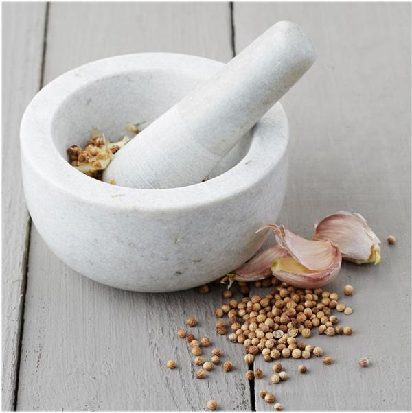 Een vijzel is het ideale hulpmiddel voor het fijnstampen van kruiden, specerijen, knoflook en meer.