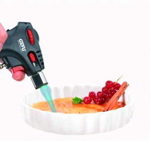 Met deze handzame Creme Brûlée brander van Gefu maak je snel en eenvoudig de heerlijkste crème brûlées met een mooie egaal bruine buitenkant en stevige, koude crème van binnen. De brander werkt op gas en heeft een handige voet.