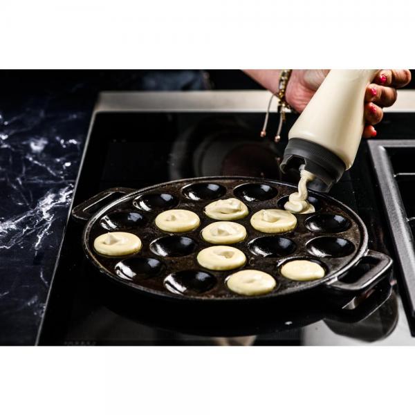De twee garneerflessen in de set van Plate-it zijn niet alleen ideaal om de juiste dosering van beslag, sauzen, olies of dressings te gebruiken, maar zijn ook het perfecte hulpmiddel bij het opmaken van je borden. Toefjes, cirkels, lijnen – alles is mogelijk. De flessen hebben ieder een eigen mond, waardoor de ene fles perfect is voor het grove, en de andere voor het subtiele werk. Ook perfect voor het doseren van poffertjes.