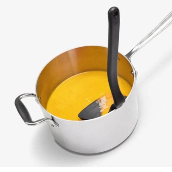 De Dreamfarm Fladle is een soeplepel die méér kan dan alleen opscheppen. De naam Fladle komt van fold flat-scraping ladle: een soeplepel die plat kan worden gevouwen en perfect schraapt. Dankzij dit slimme ontwerp berg je hem gemakkelijk op in je keukenlade en gebruik je hem zonder gedoe tijdens het koken. De flexibele siliconen rand zorgt ervoor dat je geen druppel soep of saus verspilt en eenvoudig langs de pan kunt schrapen. Extra handig is de ingebouwde maatverdeling (¼ cup en ½ cup) en de slimme handgreep waarmee je de lepel op de rand van de pan laat rusten, zodat je aanrecht schoon blijft.