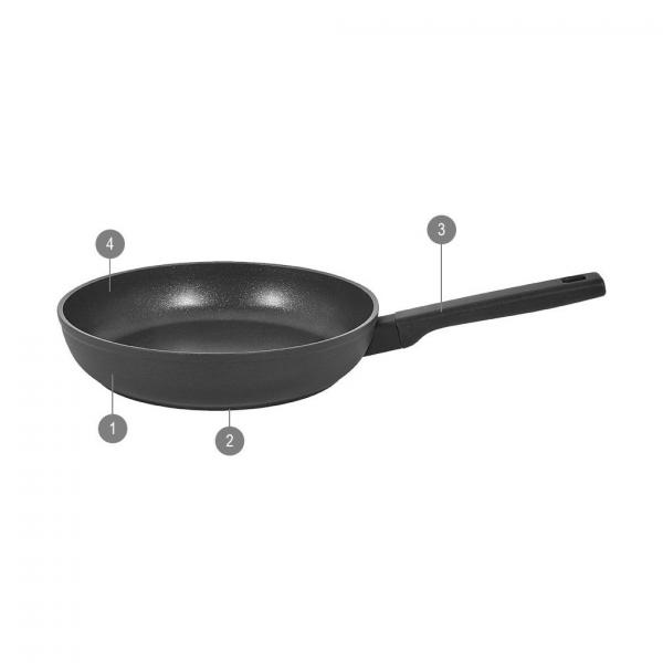 Aluminium weegt slechts een derde van staal en is dus makkelijk hanteerbaar. De 5 mm dikke body uit gesmeed aluminium garandeert een perfecte warmteverdeling en snelle opwarming op alle type kookplaten.