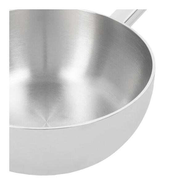 De stevige, gelaste roestvrijstalen steel ligt goed in de hand en blijft lang koel. Dankzij de Silvinox® behandeling verkleurt het staal niet en blijft de pan schitterend, zelfs na jarenlang gebruik. Hoewel deze pan in de vaatwasser kan, adviseren wij om hem met de hand af te wassen voor een nog langere levensduur.