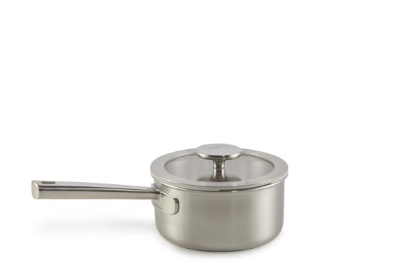 Wat deze pan extra bijzonder maakt, is het glasdeksel met siliconen rand en geïntegreerde stoomgleuf. Die stoomgleuf zorgt ervoor dat overtollige damp gecontroleerd ontsnapt. Heb je een kookplaat met een downdraft systeem in het midden van je kookplaat? Dan is deze pan uitermate geschikt. De stoom wordt gericht afgevoerd, waardoor je afzuiging optimaal zijn werk kan doen.