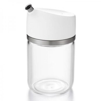 Met deze olie- / azijnschenker van OXO Good Grips behoort knoeien tot het verleden. De handige vorm en de drupvrije tuit maken het gemakkelijk om olie, azijn of sojasaus perfect te doseren. Zo doseer je handig een klein beetje olie voor in de pan, of je houdt de olie- / azijnschenker schuiner voor een gelijkmatige straal. De stand van je pols bepaalt hoeveel eruit komt. Dankzij de duurzame glazen behuizing met roestvrijstalen accenten is het een echte eyecatcher voor op het aanrecht of op tafel. Hij is vaatwasmachinebestendig en BPA-vrij. De drupvrije tuit verwijder je eenvoudig, zodat je hem goed kunt reinigen. Deze Olie- / azijnschenker heeft een inhoud van 355 milliliter.