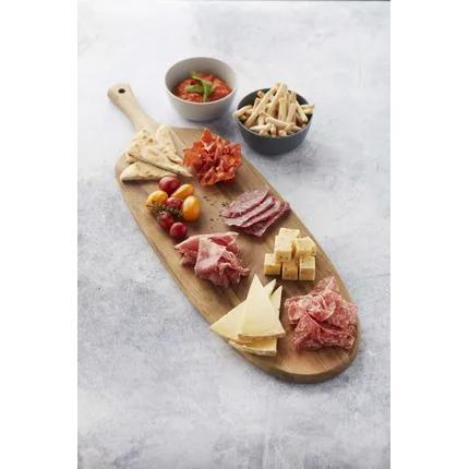 Stevige en duurzame borrelplank, perfect voor het serveren van tapas, kazen of andere hapjes. Gemaakt van hoogwaardig acaciahout, wat zorgt voor een warme en natuurlijke uitstraling. De plank is niet alleen praktisch, maar ook decoratief te gebruiken in je keuken of op tafel. Voorzien van een handig handvat. Combineer met kaasmesjes en botermesjes voor de ultieme borrelervaring!