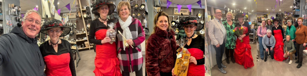 Zoals beloofd verscheen Marian in haar feestjurk (daar was geen ontkomen meer aan 😉)  en er werden volop selfies gemaakt. Jong en oud, vaste klanten en nieuwe gezichten. Het was een aaneenschakeling van glimlachen.