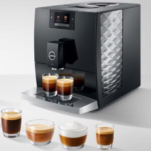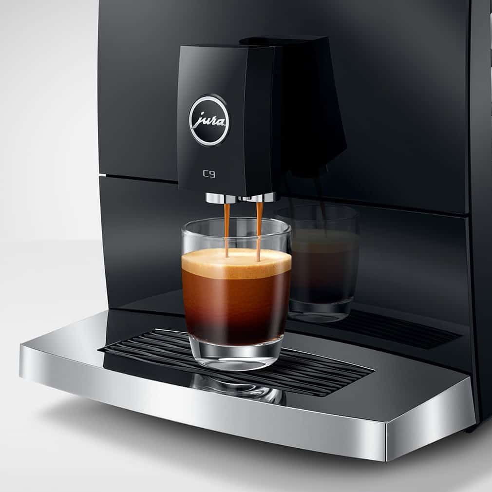 Het ontwerp van de compacte C9 is gebaseerd op de premiumklasse van JURA. Golfvormige structuren verlenen het waterreservoir vorm en accentueren het verchroomde kopjesplateau. De convex-concave voorzijde straalt elegantie en klasse uit en integreert het 2,8 inch kleurenscherm harmonieus in het totaalbeeld.