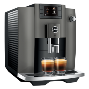 Met kalme elegantie weerspiegelt het design van de E6 de unieke technologie die achter zijn tijdloze façade schuilgaat. De strakke vorm met edele chroomaccenten zorgt voor een duidelijke expressie die compromisloos de focus legt op excellente koffie en harmonieus past in elk interieur. Zowel bij de keuze van de specialiteiten als bij de vormgeving vermijdt de E6 opzettelijk alle overdaad die zou kunnen afleiden van zijn ware kern: het perfecte kopje koffie.