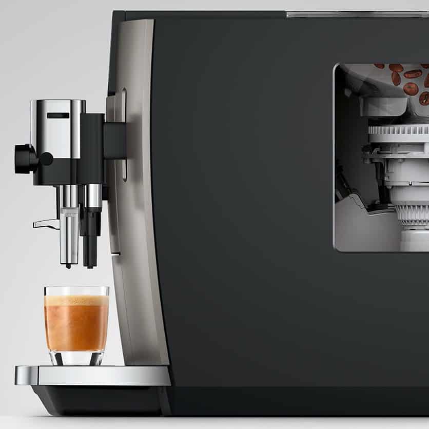 De E8 fascineert ook met intelligente technologie zoals de Coffee Timer. Hiermee kunt u uw ochtendkoffie programmeren via de app J.O.E.® en genieten van vers gemalen en bereide koffie zodra u opstaat.
