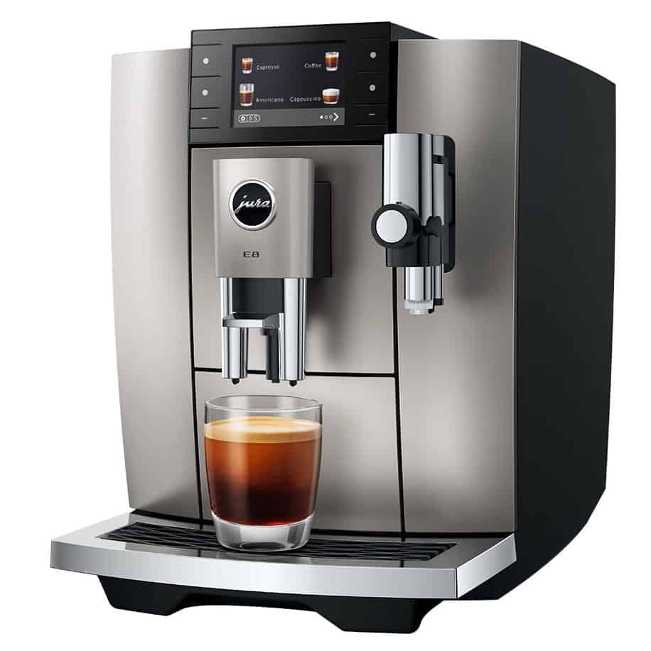 De E8 straalt met stijl en positioneert zich dankzij zijn breedte van 27 cm zelfs in kleinere keukens met indrukwekkend effect; in design en koffiebeleving.