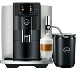 De jongste generatie van de E8 beantwoordt op alle vlakken aan de hoge eisen, die worden gesteld aan de verdere ontwikkeling van het succesvolste model van de JURA volautomaten. Deze kan rekenen op enthousiasme dankzij de uitstekende koffieresultaten, onderscheidt zich door de zeer eenvoudige bediening en geeft met het moderne, slanke design een visitekaartje af.