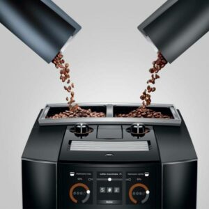 Een koffiespecialiteit met of zonder cafeïne? Een donker gebrande espresso of toch liever een milde lungomelange? De J8 twin van JURA is uitgerust met twee precisiemolens. De J8 twin bundelt als het ware twee volautomaten in één apparaat. Dat betekent, dat een apparaat verkrijgbaar is waarmee niet meer voor één optie, maar naar wens voor twee opties kan worden gekozen.