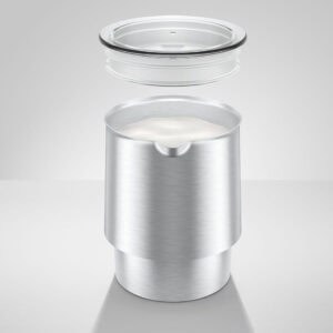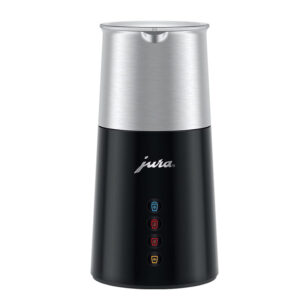 Een bijzonder hoogtepunt is de chocolademelk, die dankzij de krachtige technologie kan worden bereid met stukjes fijne chocoladereep. Het ontwerp van de melkopschuimer maakt indruk met zijn elegante en functionele vormgeving. Met slechts vier symbolen is de bediening eenvoudig en direct. De conische basis zorgt voor een stevige stand en houdt de melkhouder vast, waardoor een stijlvol en harmonieus geheel ontstaat. Met de licht gebogen schenktuit kan de opgeschuimde melk of chocolademelk precies en netjes worden ingeschonken. De melkopschuimer Hot & Cold is de ideale aanvulling op de Pure-Coffee-volautomaten van JURA en zal snel een onmisbare metgezel worden bij de koffiebereiding.
